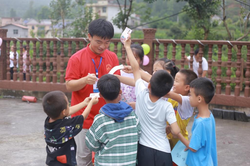 最后,队长李文希丞宣布游戏环节正式开始。游戏环节共设置六个关卡,分别为老师说、传声筒、加字不NG、一传到底、以歌会友、社会主义核心价值观。所有学生自由组队,完成全部关卡后根据入场门票参加最后的抽奖。抽奖环节结束后,团队成员与孩子们纷纷合影留念。
