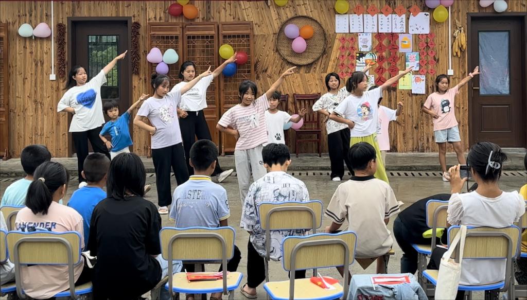 歌舞表演结束后,教师代表李博睿上台分享了他在澎湖村21天的种种感受,他说:“在为你们传授知识的过程中,我也从你们身上学会了很多,这段经历将激励我在今后保持热情,砥砺奋斗!”这样真挚的言辞打动了每一位学生。