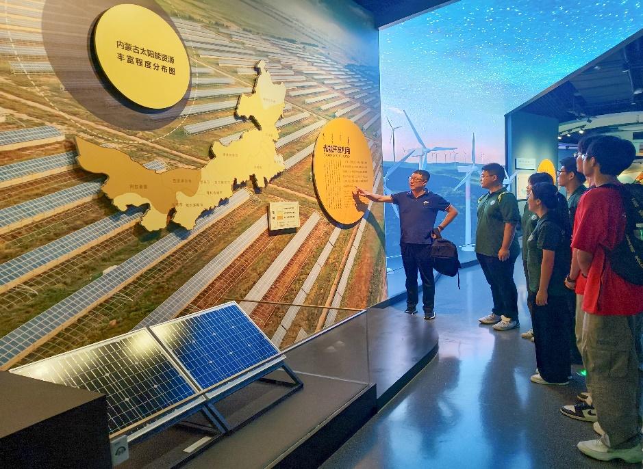 中午,实践团来到内蒙古自然博物馆,了解了内蒙古太阳能、风能的基本分布状况。赵斌老师从环境、资源、技术等多个角度阐述了太阳能与风能能够在内蒙古大力发展的必然原因,也剖析了光伏发电、光热发电与风力发电的优缺点。随后,实践队员们就如何提高光伏发电效率和降低光热发电成本展开讨论。赵斌老师表示:“这些问题正是清洁能源发展的一处‘瓶颈’,需要你们在将来的研究中进一步思考,寻找突破瓶颈都方法。”同时,赵斌老师鼓励实践队员们培养多角度思考问题,多方向解决问题的思维模式,并将“知道什么”转变为“提出问题”、“思考问题”、“解决问题”。唯有做到思维上的突破,才能做到技术上的突破。实践队员纷纷表示今后将努力学习,谨遵老师的教诲,为能源事业的发展献出自己的力量。