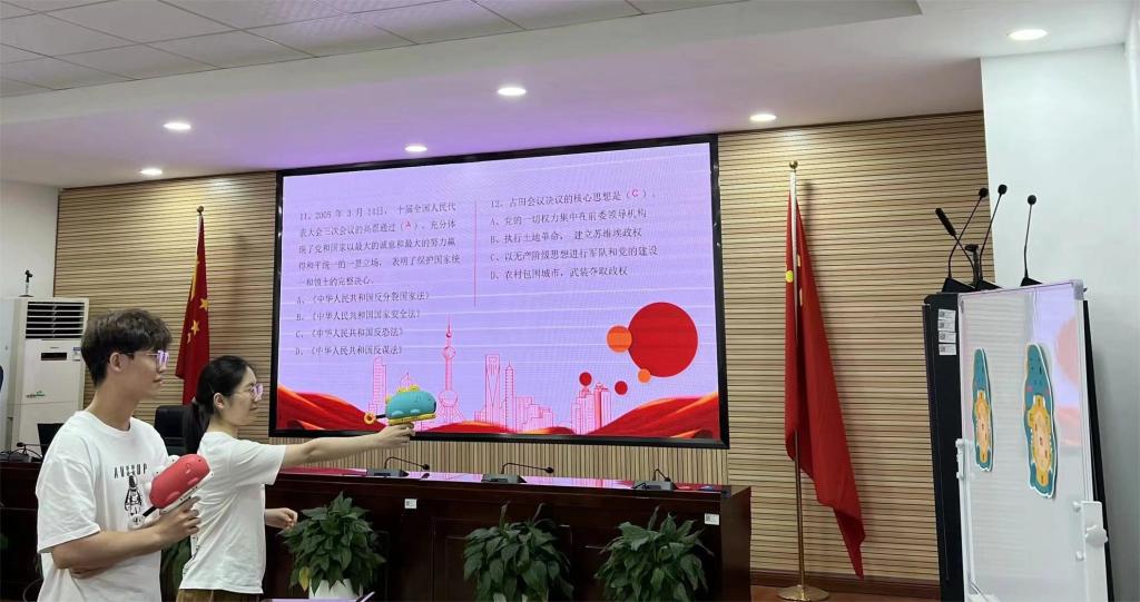 竞赛分为初赛和决赛两环节。初赛共有35支队伍参加,采用笔试的方式,主要考察同学们对党史、团史、党的二十大报告、时事政治等基本理论知识的掌握情况。经初赛选拔,确定6支队伍进入决赛环节。决赛分设“团队抢答”、“爱拼才会赢”、“擂台攻防战”、“附加风险题”等环节。
