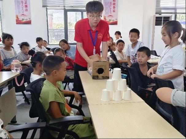 7月17日上午8:00,孩子们端端正正地坐在座位上好奇地盯着讲桌上一系列实验器材,对今天的科普活动翘首以盼。