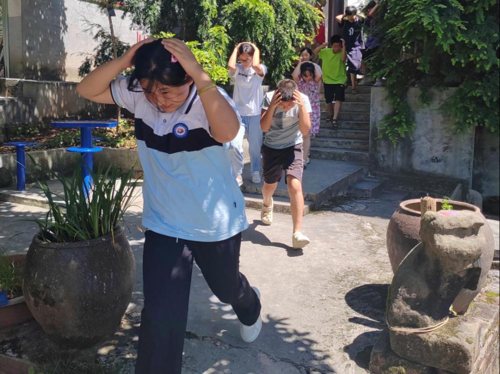 轰鸣声响起,孩子们迅速排好队伍,抱着头有序跑向操场。遇震护己,孩子们在制作地震仪后进行地震演练,让知震、防震、遇震真正深入孩子的内心,让悲剧不再发生。