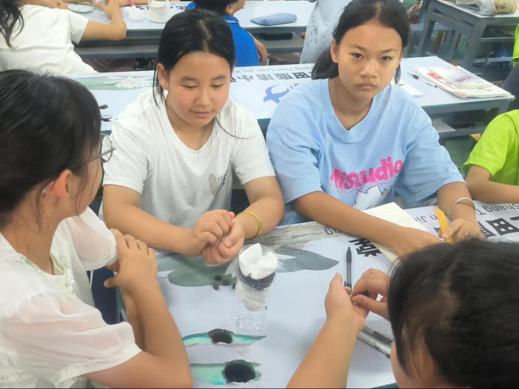人滋于淡水,水育于自然。随后队员刘嘉雨向孩子们分发种子,并进一步补充大自然的净水作用,彼时,爱护水资源与保护大自然思想的种子已然在孩子的心底发芽。