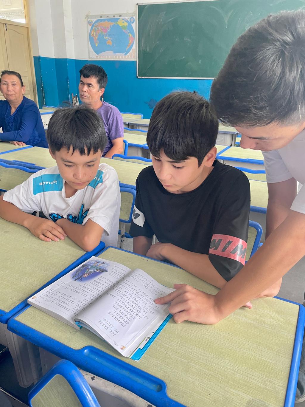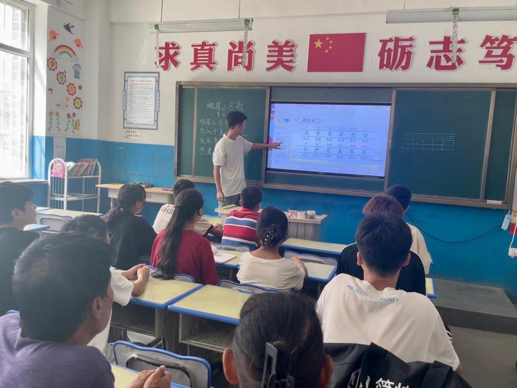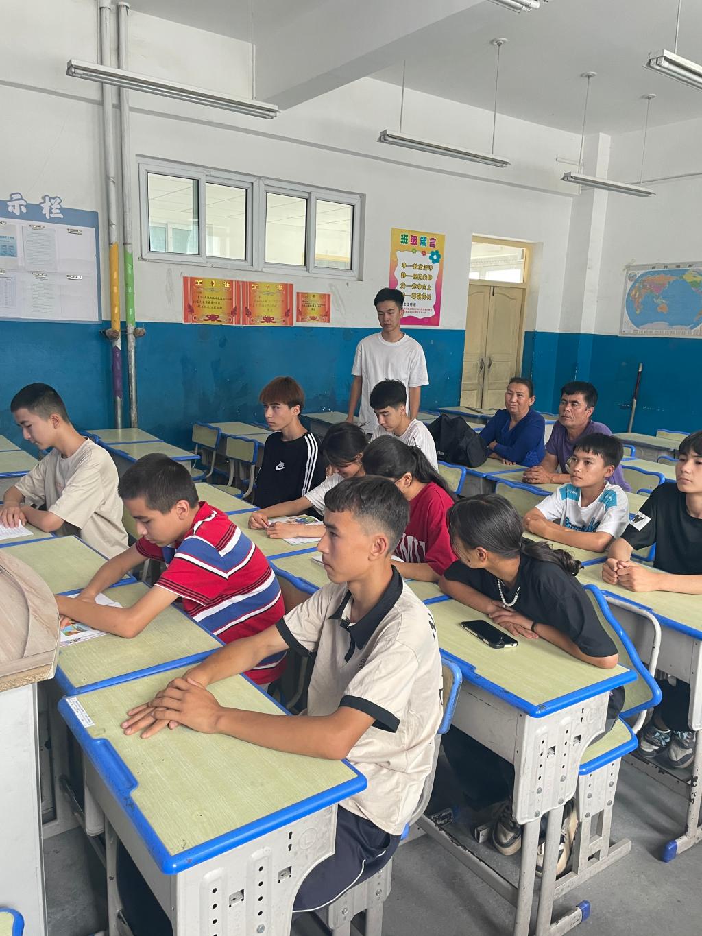 图热克扎提从理论课和实践课两部分进行普通话推广授课,为学生们详细讲解学好普通话的重要性以及如何学好普通话。实践课环节中,同学们积极上台朗读词语以及古诗,声音洪亮、发音标准、情感表达丰富。在团队成员的引导下,有限的3分钟内孩子们积极朗诵《峨眉山月歌》并主动背诵这首古诗,在这过程中每位同学轮着背起了自己最喜欢的古诗以及说明了原因,从中可以看出孩子们对学习知识的热情。这不仅锻炼了普通话的发音,还带动了对孩子们对学习的渴望。普通话教学任务结束后,图热克扎提向同学们讲解了新疆高中班、民族预科等一系列扶持少数民族学生学习的优惠政策,鼓励大家做“敢于有梦、勇于追梦、勤于圆梦”的新时代青年。