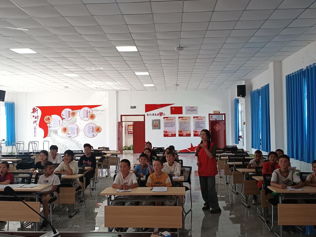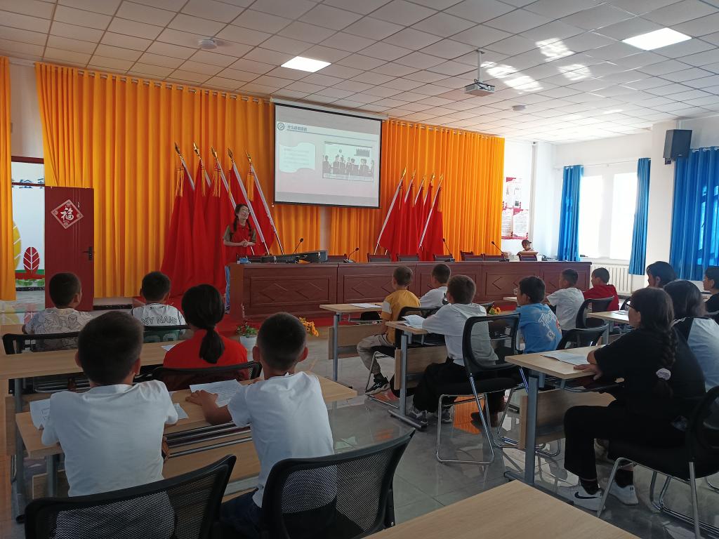 团队成员森巴特·阿依木拉提从理论和实践两部分进行了普通话推广授课。在理论授课中,团队成员向同学们讲解了学好普通话发音的技巧及学习普通话的重要性,并且让大家感受到了传统文化的魅力。实践环节中,志愿者带领学生学习了常见易错字,并引导学生朗读了《蜀道难》等经典古诗词,不仅锻炼了普通话发音,还让大家感受到了古诗中祖国山河的雄伟壮丽。在教学任务结束后,团队成员给同学们讲解前不久在本地举办的中国天马文化节的来历,并鼓励他们努力突破语言的壁垒,学习好汉语这门语言,亲身体验少年的扬鞭策马、举步生风,亲眼目睹万马奔腾、风驰电掣的震撼场景,亲自领略古诗词中描绘的祖国的壮丽河山。
