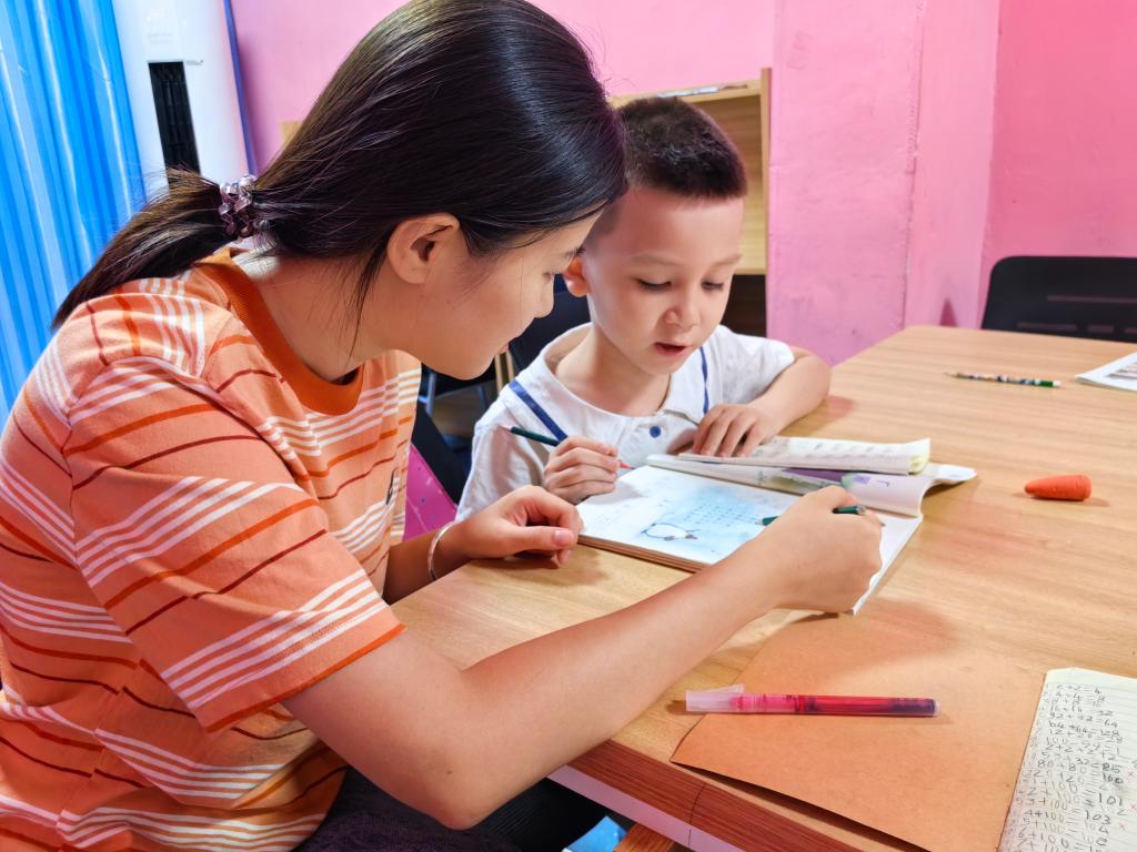 7月29日,能动学院“民族一家亲”推普助力社会实践团队在托克逊县玉泉社区开展“推广普通话,奋进新征程”普通话教学活动。