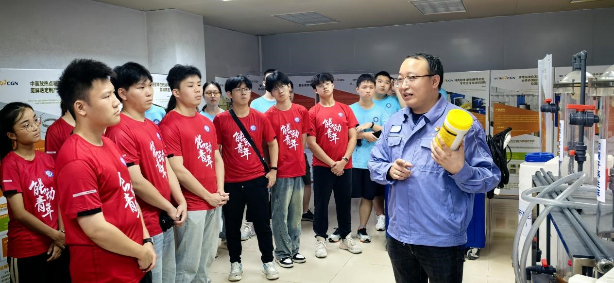 在实验室内,姚博士详细讲解了从核电厂APG废树脂再生装置到新型碘吸附器等科研项目,使团队成员不仅对核电去污放废技术有了全新的认识,更对核电科学研究产生了浓厚的兴趣和深刻的理解。姚博士手持自主研发的去污湿巾,生动阐述了“科技创新并非遥不可及,生活中的点滴灵感也能催生巨大价值”的理念。这一观点深深触动了团队成员,激发了他们探索未知、勇于创新的精神动力。