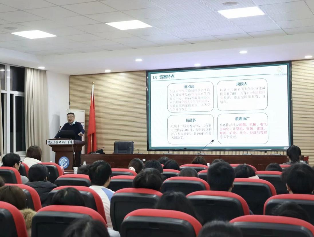 作为节能减排竞赛校内选拔赛的承办单位,能动学院坚持每年举行国赛启动仪式,旨在动员学生积极参与学科竞赛,搭建平台营造浓厚科创氛围,强化学生的专业能力、创新能力和写作精神的培育,努力为我国“双碳”事业培养优秀接班人。
