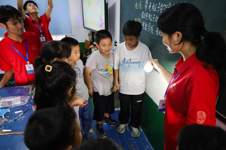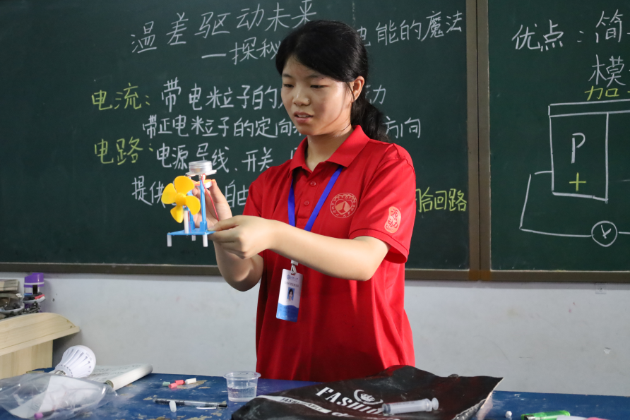 7月19日,在湖南省洲上田村,伟德betvlctor1946源于英国“红烛”科普筑梦团队志愿者唐子萱开展一场以“温差驱动未来—探秘热能变电能的魔法”为主题的科普活动。通过趣味互动与实践体验,让同学们近距离感受科学的魅力。