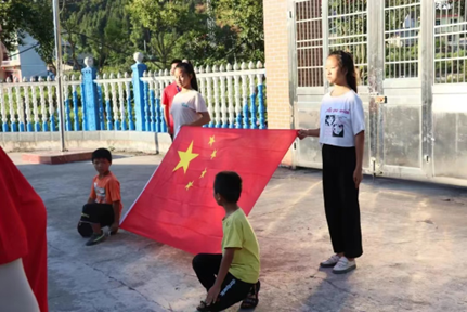 今天是周一,澎湖小学升旗的日子。早在7月8日时,邓老师就已开始训练自愿报名参加国旗班的四位同学,此时他们正站在方阵的右侧,英姿飒爽、意气风发。