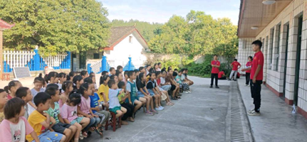 早晨的阳光细细洒在澎湖小学的操场上,早读下课后,同学们搬着自己的凳子围坐在阴凉处,等待着讲座的开始。
