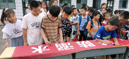 7月22日上午,澎湖小学的同学们再次聚坐在操场。天空正下着蒙蒙细雨,但仍然挡不住同学们聚集在吕贤彪老师的身上的目光。