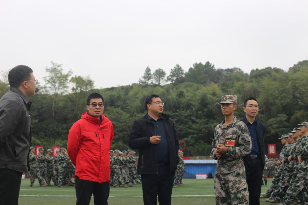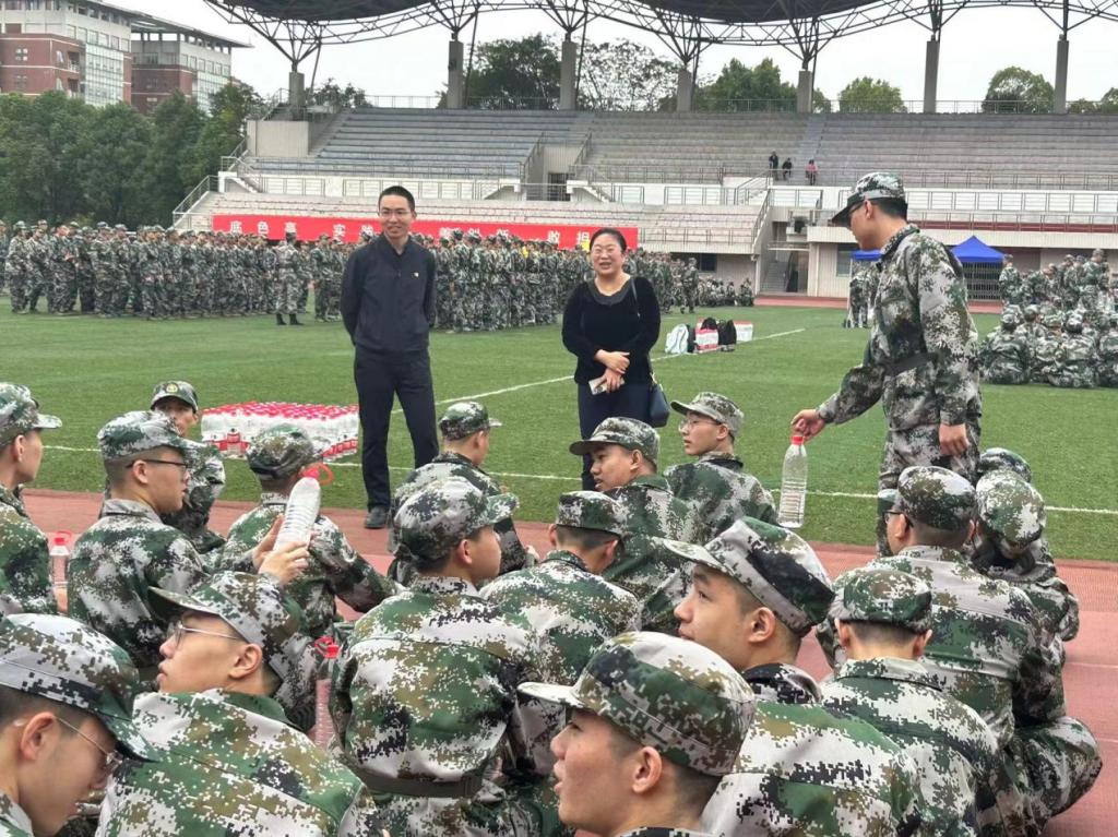 为全面了解23级新生军训情况与思想动态,鼓舞军训士气,确保军训正常有序进行,10月10日上午,能动学院党委书记成华、院长陈荐、党委副书记张晓烽、副院长田红 贾传坤、学工办老师李觅、胡雅妮、冯译萱前往云塘校区田径场慰问23级军训新生与15位带训教官,学院连队干部陈颖、罗亦欧、彭博陪同。