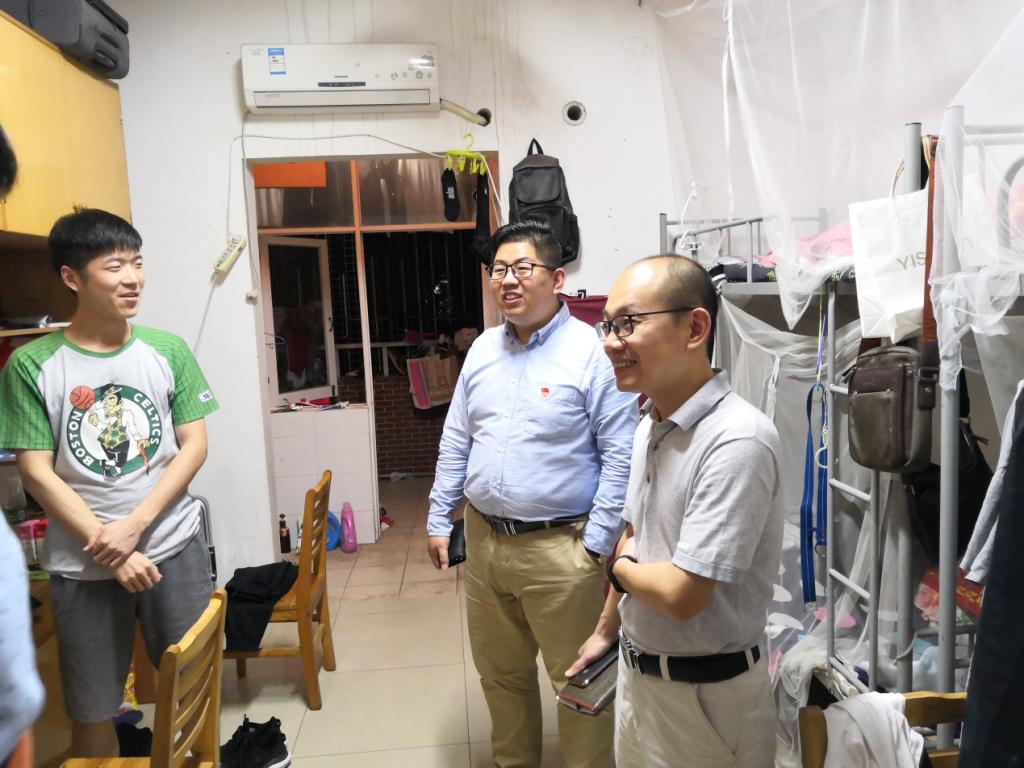 为进一步了解研究生日常生活以及寝室安全情况,做好研究生教育培养工作,5月10日晚上,能动学院副院长刘忠副教授,研究生辅导员李小军和院研究生会学生干部走访了云塘校区所有研究生宿舍,与学生亲切交流。