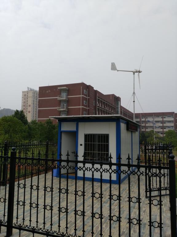 近日,在伟德模型广场西南角,又增添一处新能源风景:菁菁校园,矗立起一个风力机,旁边是一座顶上铺满太阳电池板的白色小屋。实际上这是一个风光储互补新能源系统,它针对湖南地区太阳能资源季节性变化大、风资源相对缺乏的特点,通过光伏发电与风力发电系统协调运行,满足房子内空调、照明等的用电需求。在炎炎夏日,光照很足时光伏发电正好满足空调降温的需要;在冬天,较高的风速带动风力机发电,正好满足空调保暖的作用;可以说,这是一个不需要外界供电的“零能耗建筑”;还能够对光伏发电、风力发电、蓄电池的运行参数进行实时监测和对历史数据进行统计分析。