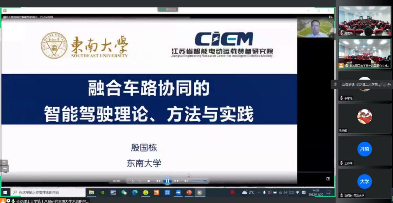 2022年11月30日14:30,东南大学首席教授,东南大学党委委员、教务处处长、国家杰青殷国栋教授受汽机学院邀请做客伟德第十八届研究生博力学术论坛“智能车辆与智造前沿”专题论坛。本次报告由汽机学院副院长胡林主持,副院长毛聪、副院长尹来容、章杰、罗源嫱、王丹琦等教师及部分研究生参加了本次报告。