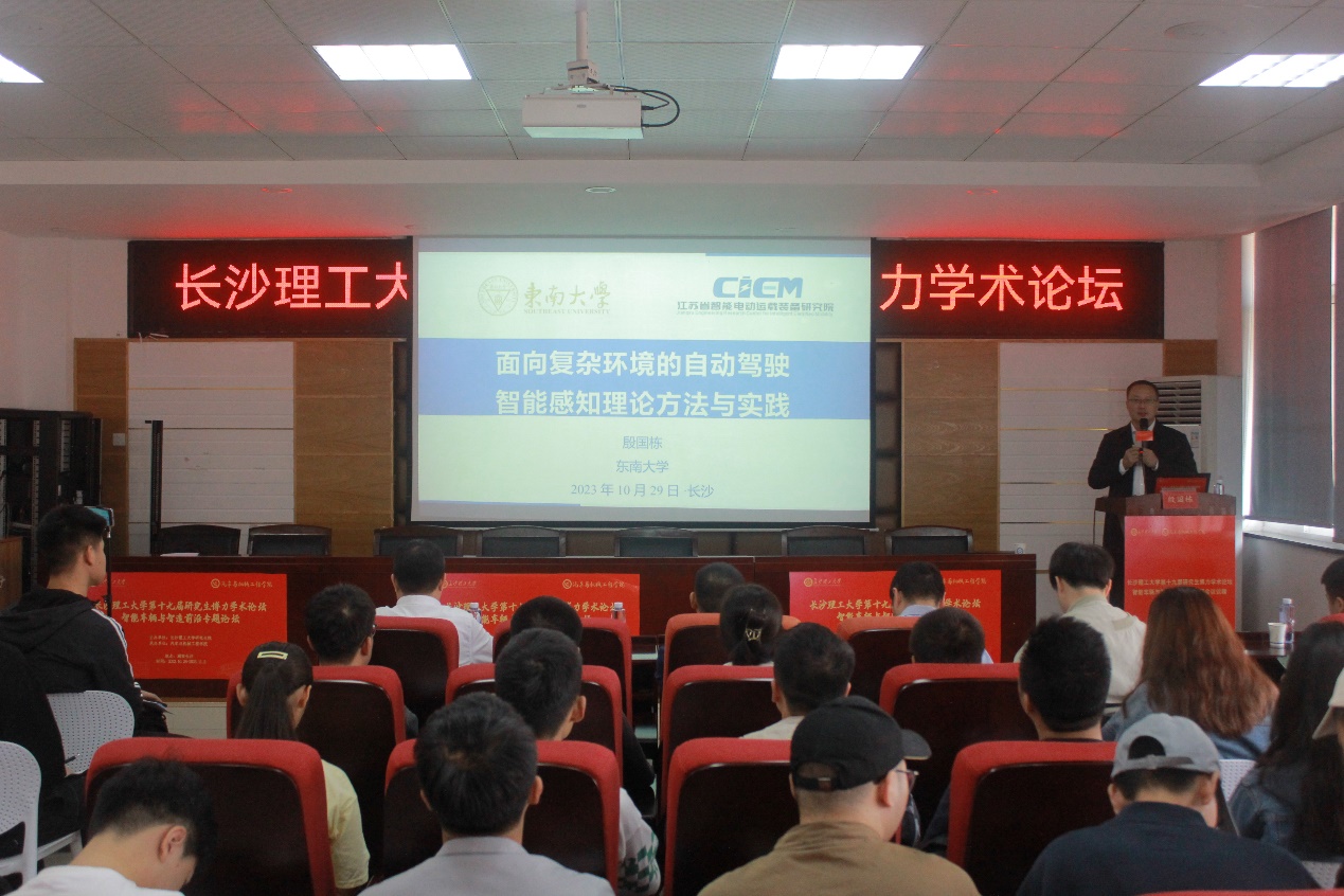 2023年10月29日,国家杰出青年科学基金获得者,中国汽车工程学会会士,东南大学教务处处长殷国栋教授受邀做客伟德第十九届研究生博力学术论坛——“智能车辆与智造前沿”专题论坛。本次报告会由汽机学院副院长(主持工作)胡林教授主持,学院相关教师、研究生及本科生参加了本次报告会。