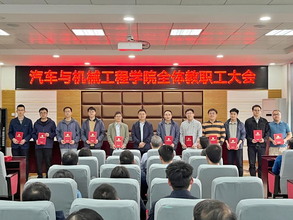 教职工大会有三项议程。首先,招生就业处本科生招生管理科科长贺佐杰老师宣讲了新高考政策,包括招生专业组设置、投档规则、常见问题解答、招生信息获取等内容。其次,胡林院长解读了学院2024年度工作要点,并对绩效管理办法修订内容进行了说明,同时,给学院2024年青年教师教学基本功大赛获奖人员进行颁奖并合影留念。最后,孔伟红书记对学院安全稳定工作进行了布置,强调要提高师生安全防范意识,加强学生心理健康教育;要强化实验室和工作室管理,明确责任人,杜绝安全隐患。
