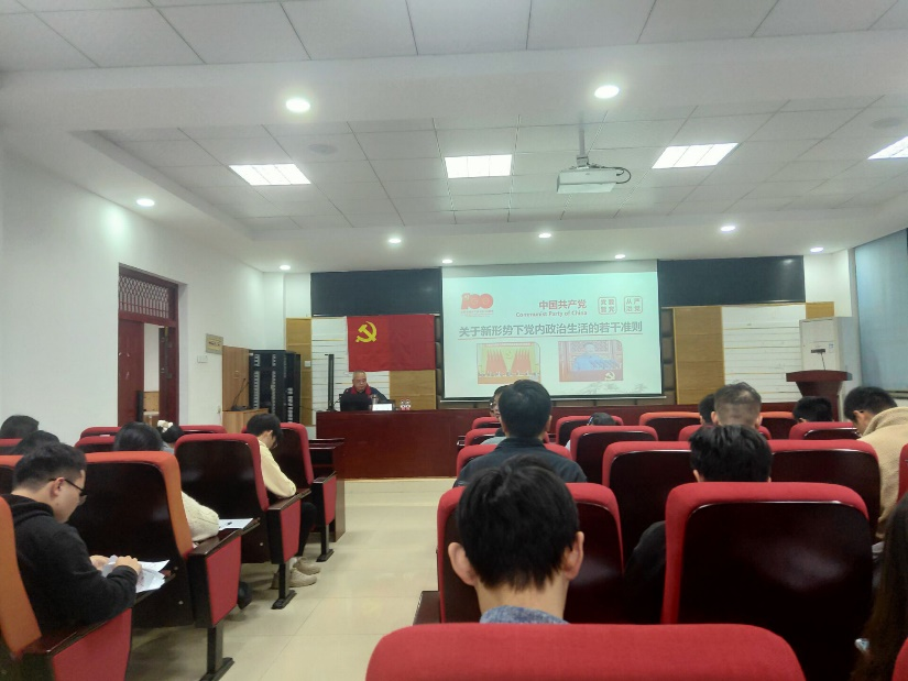 邓豫从《新准则》的制定背景、内容解读、践行履责三个方面进行讲解。他首先强调,严肃党内政治生活是全面从严治党的重要基础,随后邓豫用习近平总书记在回顾总结管党治党的经验时在各种场合都强调的党的建设来指出新形势下,党内政治生活出现的突出问题所造成的严重后果以及为什么要制定新准则的原因。