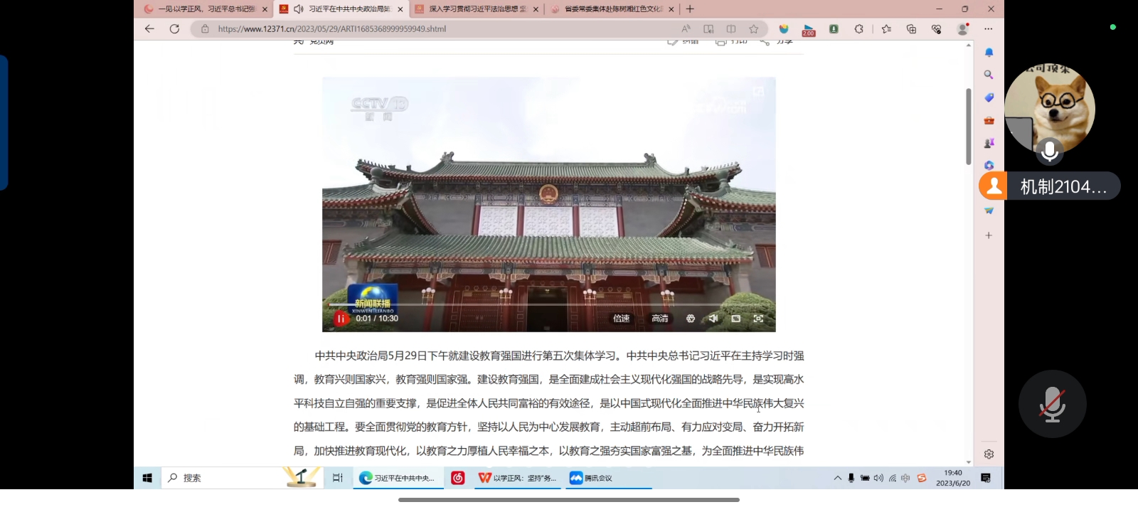 主持人带领大家学习了习近平总书记在内蒙古考察主题教育发表的重要讲话,为大家讲解了为何要以学正风,以及通过务实之风、清廉之风、俭朴之风三个方面讲述了如何去以学正风。随后全体党员集中观看了中共中央政治局就建设教育强国进行第五次集体学习的相关视频,并自主学习了省委常委集体赴陈树湘红色文化园接受革命传统教育等学习资料。