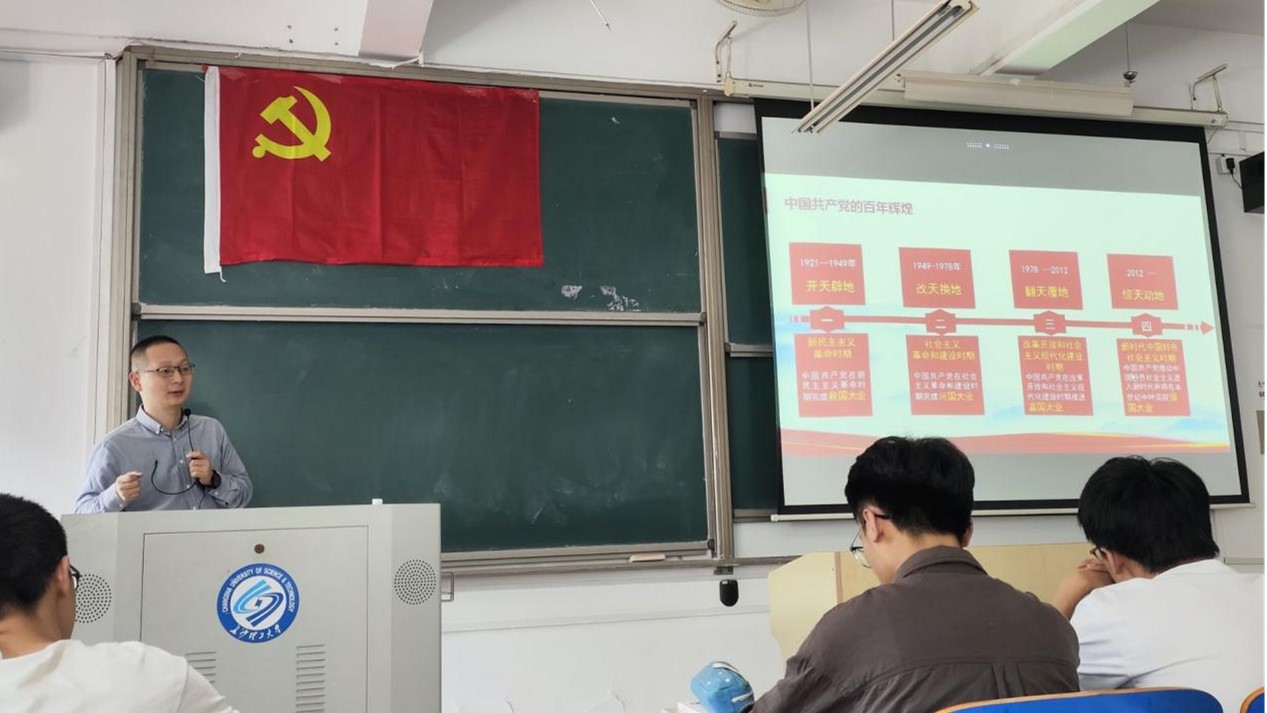 蔡喜平以提问的形式开启了课堂讲授。他向全体学员提出了三个问题:“经历百年困难,中华民族何以奇迹般地崛起与复兴?作为建党百年的世界最大政党,中国共产党何以永葆朝气、生生不息?新时代大学生应如何担当时代责任和历史使命?”围绕三个问题的思考,蔡喜平用开天辟地、改天换地、翻天覆地、惊天动地四个关键词阐述了中国共产党的百年辉煌,深刻阐述了党百年奋斗的重大成就和历史经验。他表示,中国式现代化是实现中华民族伟大复兴的根本之路,新时代中国青年是探索中国式现代化历史进程的先锋力量,希望全体学员坚定历史自信,增强历史主动,让青春在全面建设社会主义现代化国家的火热实践中绽放绚丽之花。