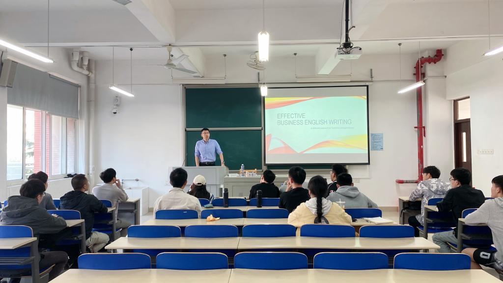 “A—Attention, I—Interest, D—Decision, A—Action,”课程伊始,梁经理给大家播放了《大亨游戏》中的一个片段,对学员们提出警戒:现实世界是弱肉强食的,而行动永远在第一位。梁经理通过结合自身经历,提出商务写作和商务信函两个概念并进行区分;随后,梁经理指出在进行商务写作时,要明确写作目的,弄清楚预期读者,并深入了解读者的兴趣爱好,其次,在进行写作时,要时刻谨记自己代表公司形象,需要根据不同语境选择不同的措辞;紧接着,梁经理从学术写作和商务写作的不同之处提出,写作的第一目标是要贴近公司文化。最后,梁经理表示社交媒体在商业活动中发挥着重要作用,合理利用各种运营渠道十分有利于商业活动进行。