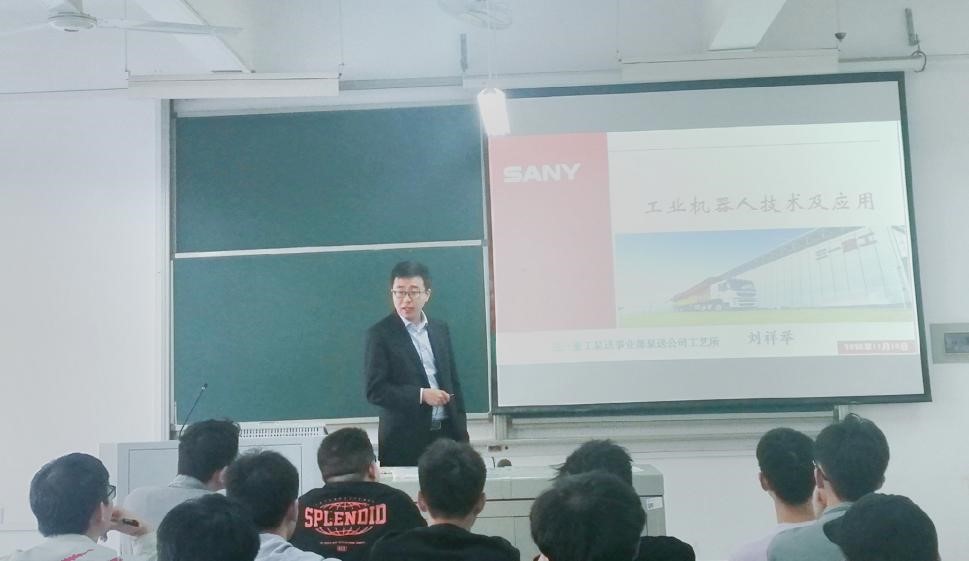 2020年11月10日下午14:00,在伟德betvlctor1946源于英国云塘校区工科一号楼B213开展了三一集团与伟德betvlctor1946源于英国校企联培智造班第二课—“工业机器人技术及应用”,本次教学课程由现三一泵送事业部泵送公司工艺工程师刘祥举主讲。