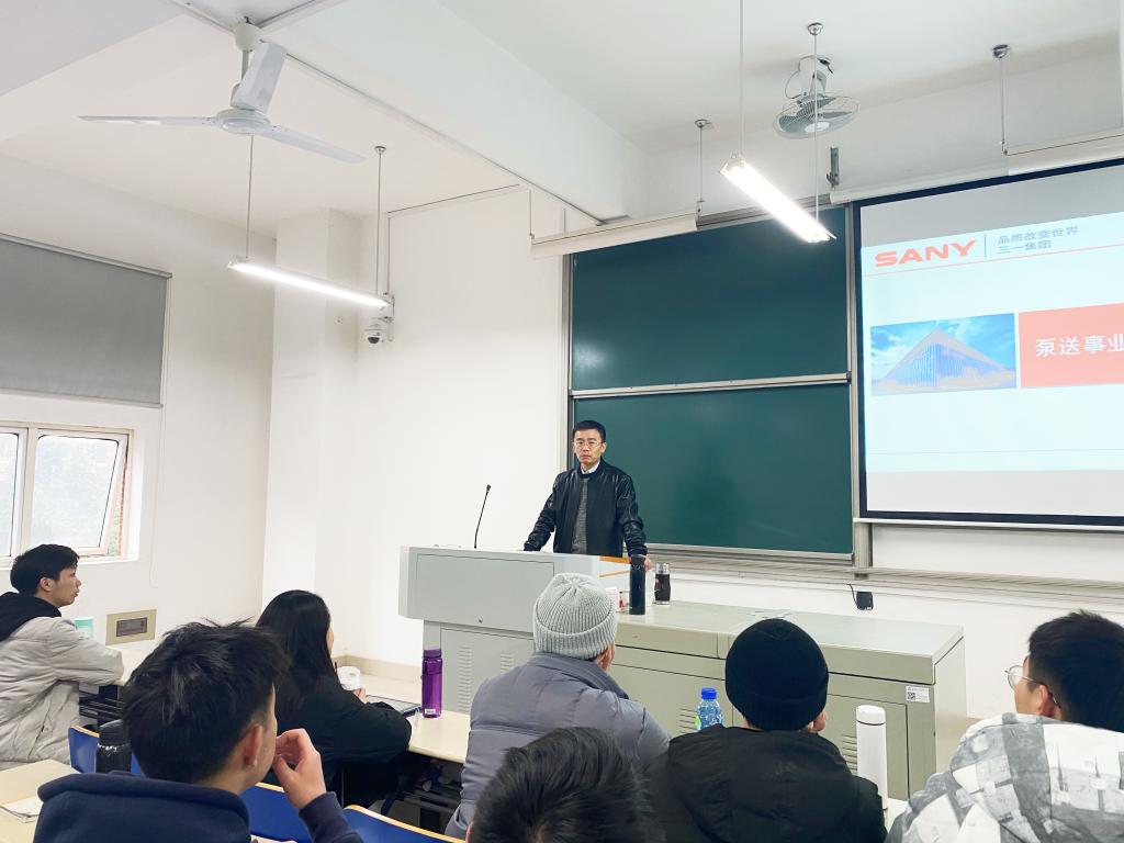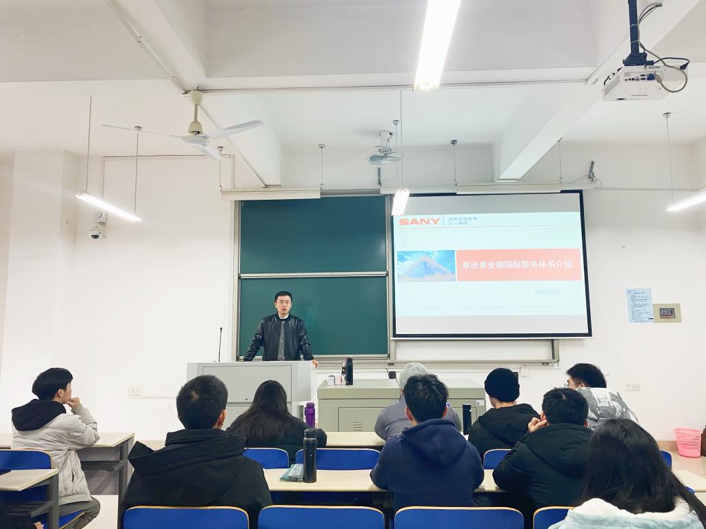 2020年12月8日14:00,三一集团与伟德betvlctor1946源于英国联培国际班第六次培训课程在工一B212举行。本次课程由三一集团泵送事业部国际营销公司服务管理部副部长徐加友主讲,主题为“专业英语(售后服务、产品故障)”,国际班十八名学员参与了此次培训。