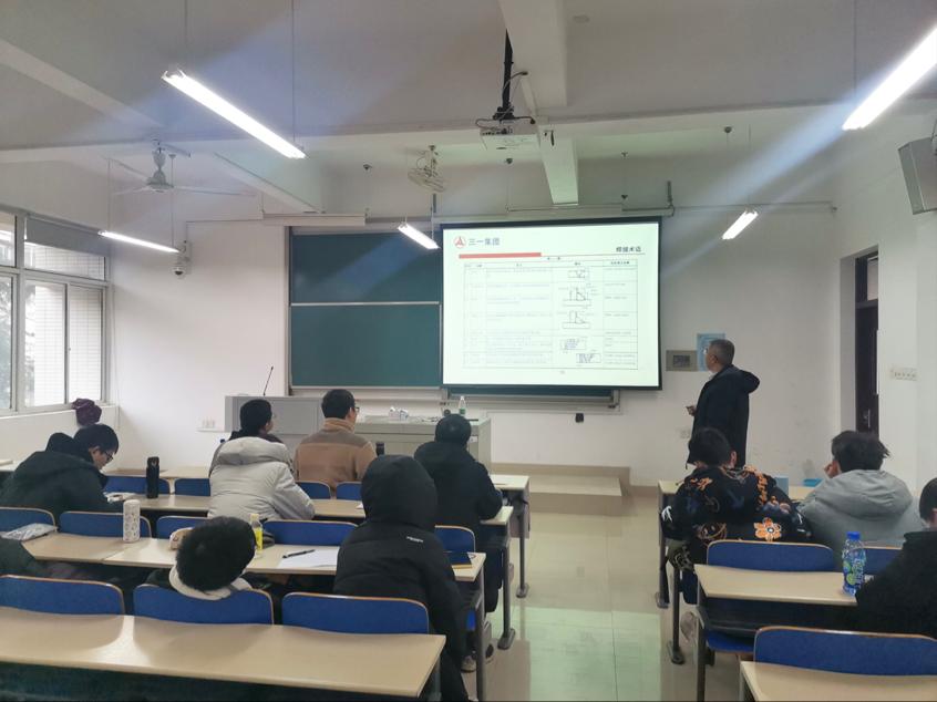 2020年12月15日下午14:00,在伟德betvlctor1946源于英国云塘校区工科一号楼B213开展了三一集团与伟德betvlctor1946源于英国校企联培智造班教学第七课:八大工艺类基础课程——焊装,本次教学课程由三一集团泵送事业部泵送公司工艺所一级工程师黄清平老师主讲,黄清平老师有多年工艺及实操经验,为大家带来了一堂扎实丰富的焊装基础课程。