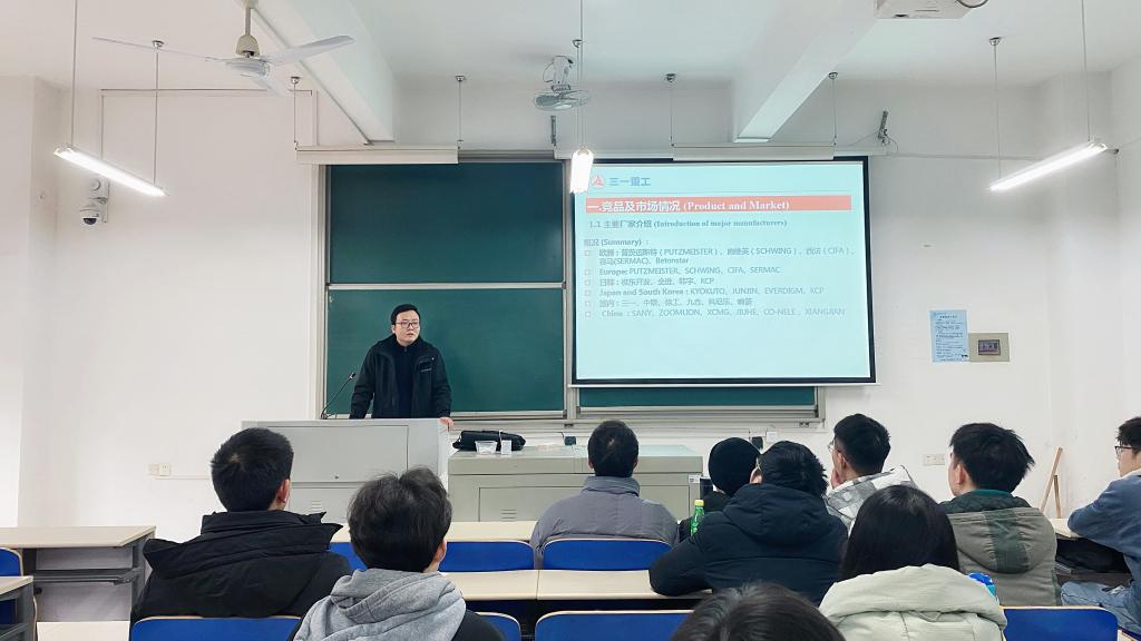 2020年12月16日14:00,三一集团与伟德betvlctor1946源于英国联培国际班第七次培训课程在工一B212举行。本次课程由三一集团泵送事业部泵送公司研究院研发所长黄运明领导主讲,主题为“泵车总体设计培训”,国际班十八名学员参与了此次培训。