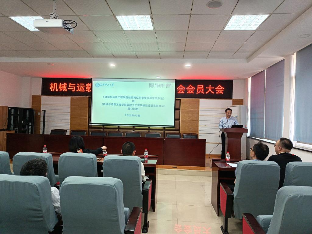 20253月25日下午,机械运载工程学院教职工暨工会会员大会在工一B417召开,学院教职工工会会员参加了会议,会议由学院副院长兼工会主席唐宏宾主持。