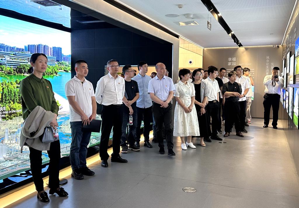 在湘江新区城市馆,党员们跟随讲解员系统学习了新区规划建设成果。从“你好湘江”的现代化实践展,到“动力新区”的科创成果展示,再到“匠心城市”的多媒体互动体验,大家深刻感受到新区以创新驱动高质量发展的蓬勃力量。“向往未来”展区的前瞻性设计,更激发了党员们对科技强国使命的思考。