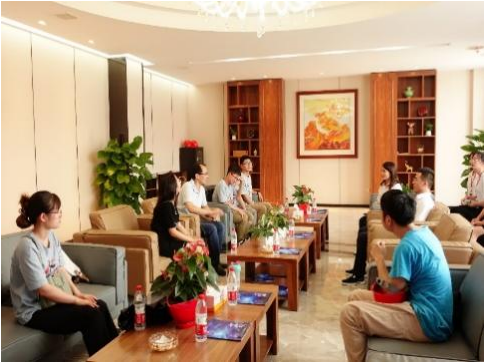首先,在五新隧装人事行政部副部长李玲的带领下,实践团成员与五新隧装副总经理崔连苹一行人于公司会议室开展座谈会。座谈会上,副总经理崔连苹向实践团成员介绍了公司在钻爆法隧道施工与地下开采成套智能装备研发、制造上的先进经验。实践团成员在听完副总经理崔连苹的介绍后,结合目前路基路面动态弯沉与回弹模量联合测试设备研制过程中遇到的问题与崔经理展开深入交流。崔经理表示目前实践团在设备研制过程中所遇到的技术难题,公司许多产品都可以提供相应的技术参考。