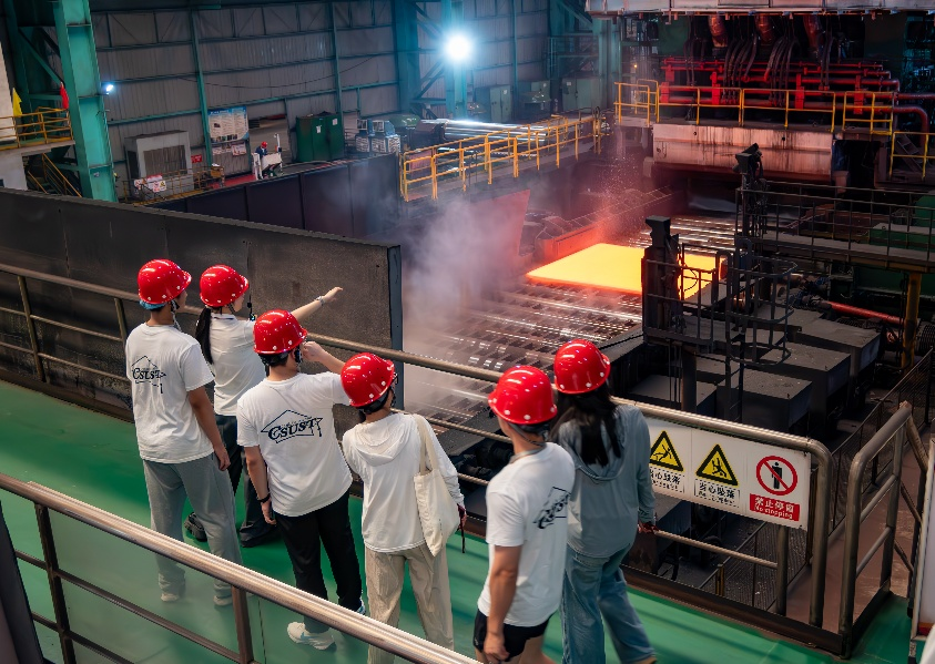“这段冷却管线为何要绕那么大一圈?”“高炉产生的煤气是否回收利用?”实践团带着问题参观废热回收系统,从高炉煤气发电到冷却水梯级利用,从余热回收换热器到车间能耗监控平台,一张“钢铁绿色地图”逐渐在他们脑中展开。“过去觉得重工业是高污染高耗能的代名词,但现在才知道‘绿色转型’也能炉火纯青。”实践团成员戴璐颖记录下企业“双碳”路径中的关键数据,准备作为后续调研的重点分析材料。