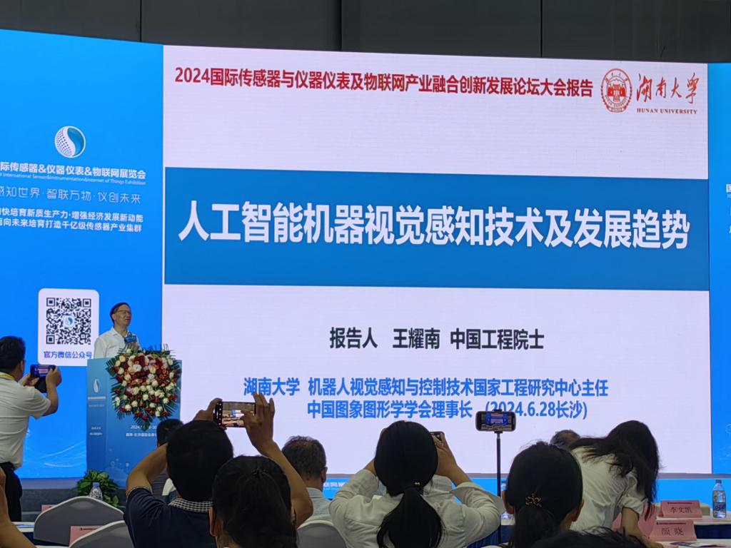 开幕式上,中国工程院士王耀南作了题目为《人工智能机器视觉感知技术及发展趋势》的报告,具体讲解了机器视觉在生物医学、精密测量,尤其在电子、汽车工业零件生产等方面的重要作用,工信部赛迪研究院物联网中心主任韩允作了主题为《新质生产力背景下传感器产业的几点思考》的交流,介绍了传感器在汽车电子、智慧城市、智能制造以及新能源等方面的具体应用和现实意义。