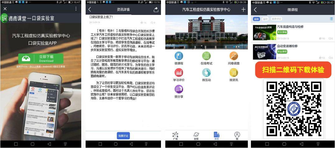 通过网站资料提供的二维码,扫描并下载客户端安装,也可以进入伟德betvlctor1946源于英国汽车工程虚拟仿真实验教学中心汽车仿真教学口袋实验室。