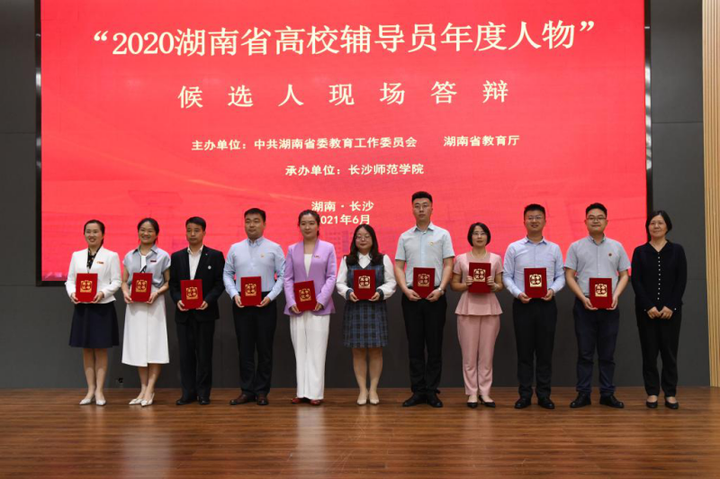 2020湖南省高校辅导员年度人物评选由全省各高校推荐,省委教育工委、省教育厅组织专家评审,遴选出30名辅导员入围现场答辩环节,通过现场展示和和答辩评选出10名“2020湖南省高校辅导员年度人物”。