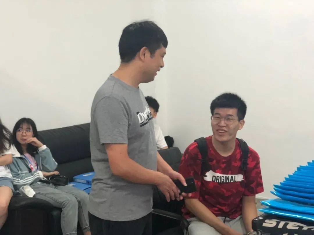 在第一次新生班会自我介绍完毕后,研究生辅导员宋新为每位同学赠送了专属自己的研究生工作室姓名牌,随后带领研究生们前往研究生工作室完成贴牌仪式。