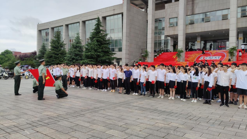 接受礼物后,全体毕业生党员佩戴党徽,右手握拳,面向鲜红的党旗庄严宣誓,在重温入党誓词的过程中又一次坚定了入党初心。