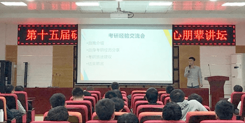 几位硕士研究生分享的各自不同的考研经历,发挥了朋辈的引领作用,极大地激发了同学们的考研热情,也为 正在备考感到迷茫的同学们拨开层层雾。这次的讲座在学弟学妹们热情的氛围中圆满结束。