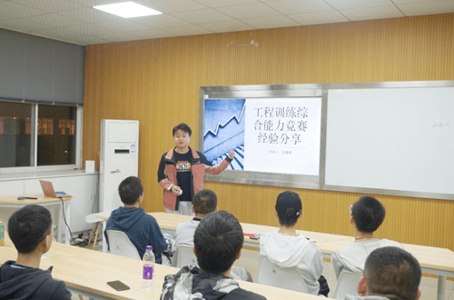 周惠来首先进行科技专利撰写的经验分享,他从五个方面介绍了如何写出合格水准的专利。张浩作为从本校保研的优秀学生代表,这是他第二次在朋辈课堂上讲述自己的经验,他讲述了比赛的种类、比赛的具体流程以及如何有效高效利用自己的时间,并给同学们送上了自己的祝福。李康为强调了比赛各阶段应具备强大的心理素质和综合能力,同时他还将自己的实习生活与大学生活进行对比来告诉同学们要珍惜现在的时光。最后是邱国梁对工程训练综合能力竞赛进行了详细的介绍和指导。