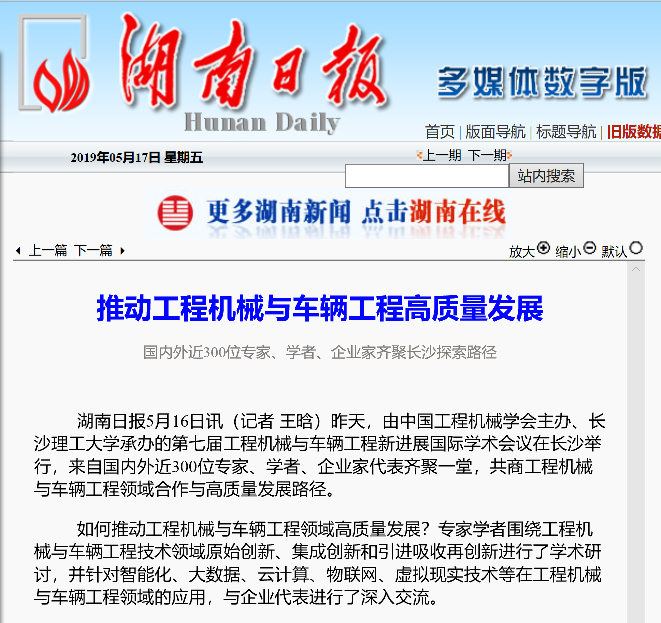 湖南日报:推动工程机械与车辆工程高质量发展