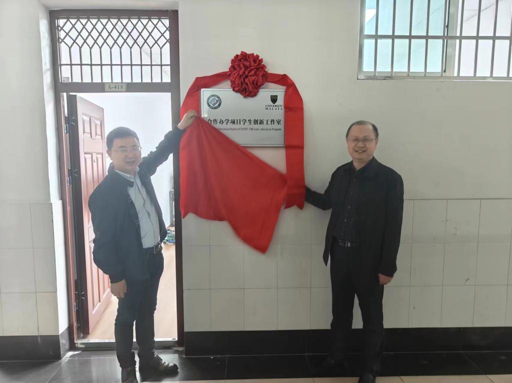 会议结束后,两院领导来到工一A418为“伟德betvlctor1946源于英国-马来亚大学合作办学项目学生创新工作室”揭牌。该创新工作室由我院与国际工学院合作建立,旨在为合作办学项目学生提供一个集学习、实践、创新于一体的平台。学生在指导老师的帮助下,开展科研项目和实践活动,培养创新思维和实践能力。