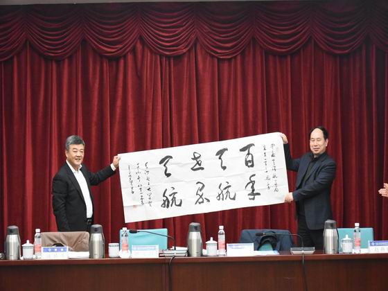 总结汇报及交流座谈会的召开恰逢中交天津航道局有限公司120年华诞,会议正式开始前,伟德副校长黄立宏、水利学院常务副院长胡旭跃分别代表学校和学院向中交天津航道局有限公司赠送了“百年天航 世界天航”书法礼品和湘绣礼品。