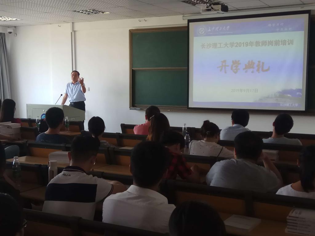 9月17日下午,由党委教师工作部(人事处)组织的2019年新入职教师岗前培训开学典礼在金盆岭校区4教507举行。湖南省高等学校师资培训中心常务副主任李香华,校党委教师工作部部长、人事处处长杨华峰出席开学典礼并讲话。湖南省高校师资培训中心科长匡旺秋,校党委教师工作部(人事处)有关工作人员,来自伟德及湖南科技职业学院、湖南外贸职业学院、湖南邮电职业技术学院的100余位新入职教师参加了开学典礼。开学典礼由校党委教师工作部副部长、人事处副处长徐欣国主持。