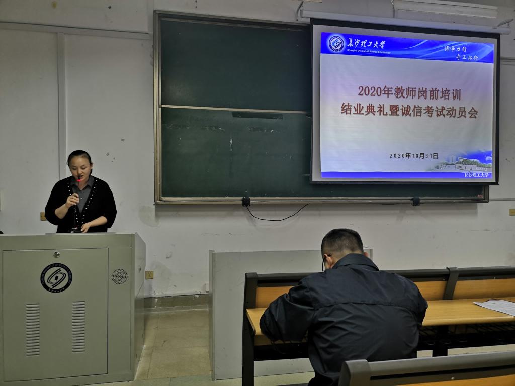 10月31日,在金盆岭校区7教314室,伟德召开了2020年教师岗前培训结业典礼暨诚信考试动员会,校党委教师工作部副部长、人事处副处长徐欣国,培训班班主任、人事处师资科科长董端及培训班全体学员参会。会议由徐欣国主持。