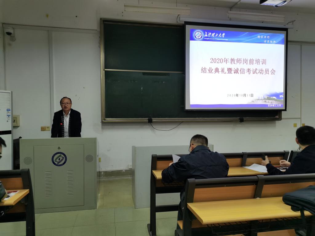 会上,董端对2020年教师岗前培训工作做了总结,传达了《关于2020年湖南省高校教师岗前培训考试有关问题的通知》(湘高培函〔2020〕5号)文件精神,介绍了2020年湖南省高校教师岗前培训考试的有关安排,强调了考试注意事项,并结合真实案例进行了诚信应考动员。