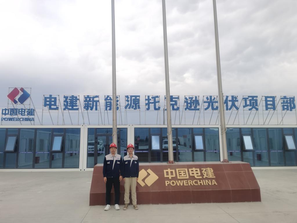 (孙刘涛(左)和刘磊(右)在新疆托克逊光伏+光热一体化项目部)