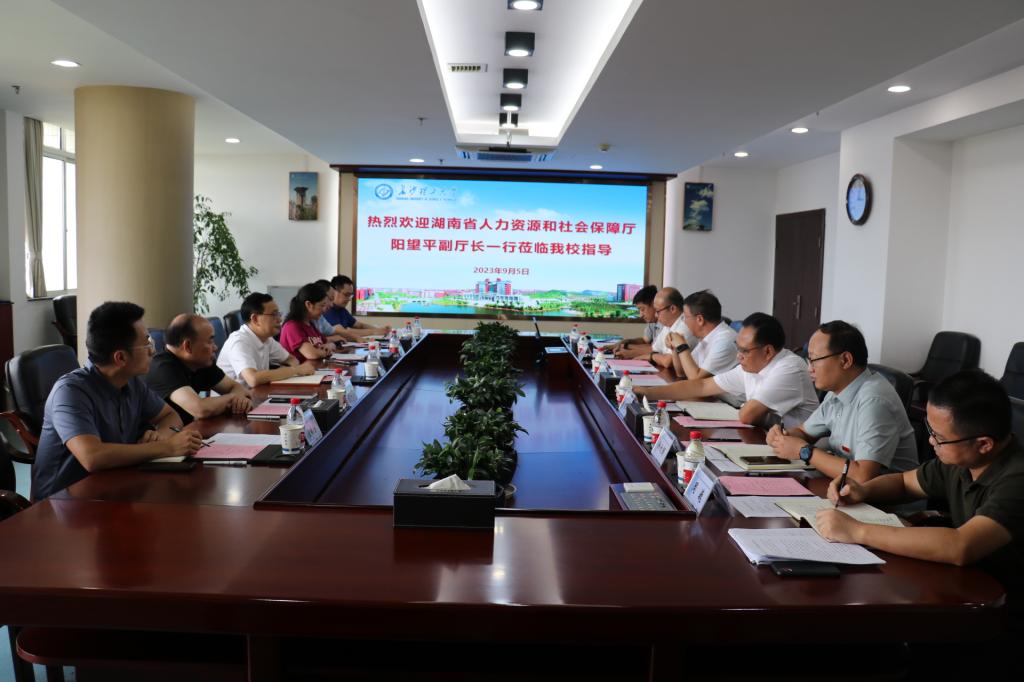9月5日下午,湖南省人力资源和社会保障厅党组成员、副厅长阳望平带队来伟德调研人事人才工作,学校党委书记付宏渊出席调研座谈会,学校副校长刘朝晖,省人社厅相关处室负责人及学校人事处负责人参加座谈。