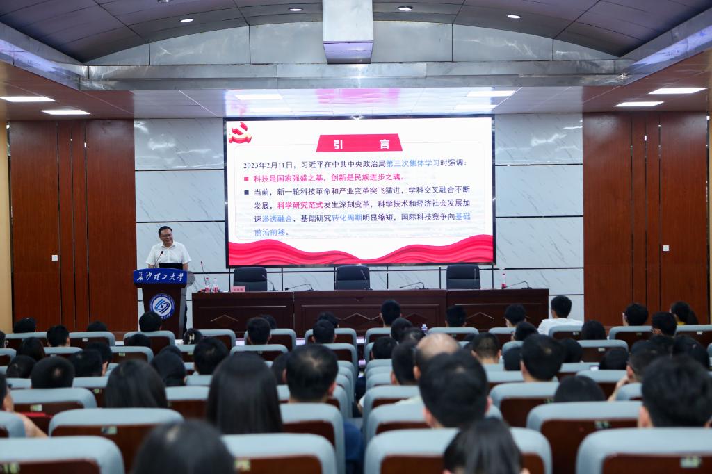 开学典礼后,刘朝晖以“做有组织科研 推进高校科技工作高质量发展”为题做了首场讲座。他站在国家战略需求的角度回答了“为什么要做有组织科研”的问题,在综合各方学者观点基础上解读了“什么是有组织科研”,从不同角度阐述了做有组织科研的举措,并介绍了伟德在做有组织科研方面的思路和做法。他勉励全体新进教师要不断增强科技自主创新能力,形成全校科技创新“一盘棋”格局,为建设“科技强国”、落实湖南“三高四新”美好蓝图,贡献长理力量。